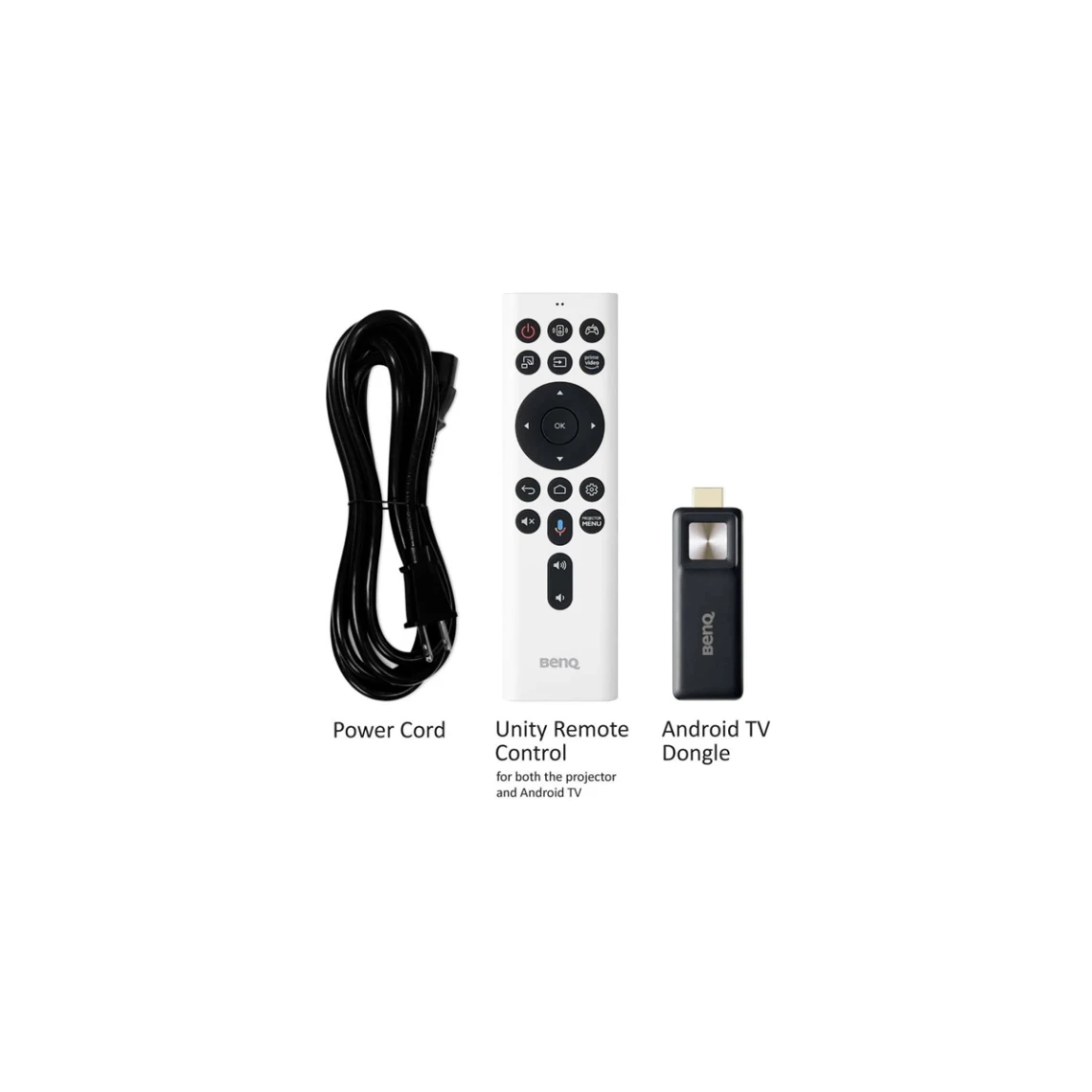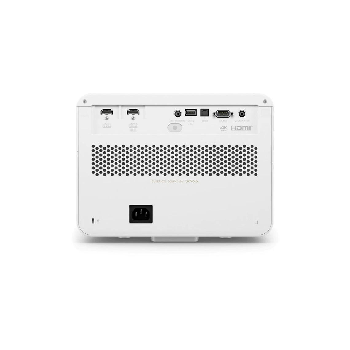 Vidéoprojecteur 4LED. 4K UHD par simulation. 3000 Lumens. Contraste : 500 000:1. BenQ CinematicColor™. BenQ HDR-PRO. Rec.709. HDR10. HLG. Dolby Atmos®. eARC. Android TV. 1080p 120 & 240 Hz, 2160p 60 Hz. Zoom 1,3x 2x 5 W. 2x HDMI 2.0b. 1x USB. 1x Mini-Jack 3,5 mm. Bluetooth. Wifi. Poids : 6,4 kg