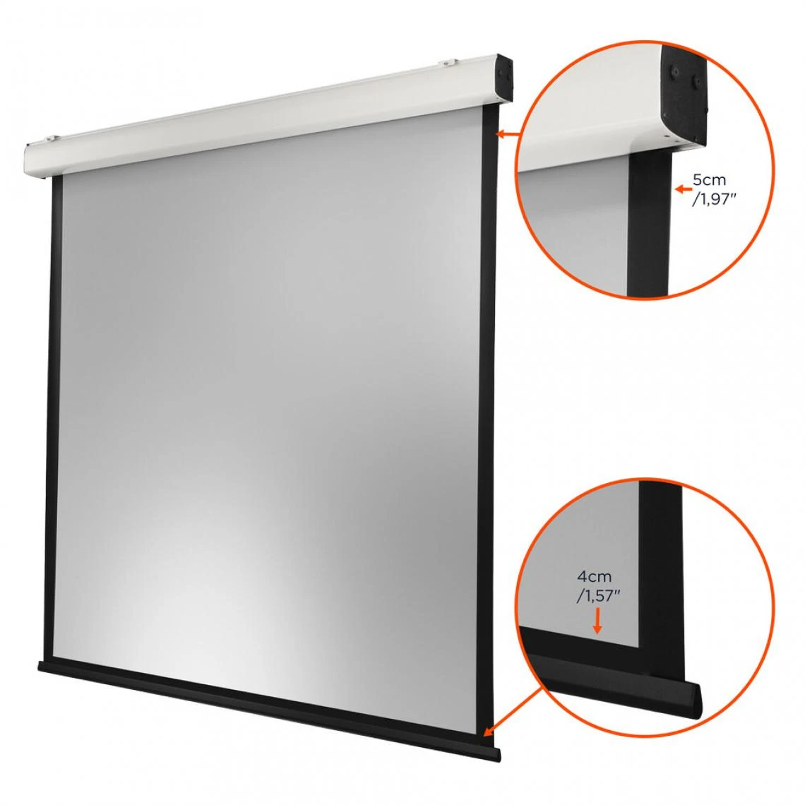 L’écran de projection dispose d’une bordure noire. Ceci permet une délimitation optimale de l’image, tout en donnant un meilleur contraste à vos projections. Le dos noir, quant à lui, empêchera la lumière de s’échapper. Le dos noir opaque évite une éventuelle perte de lumière du vidéoprojecteur dû à un arrière-plan lumineux. Ainsi, vous pouvez installer sans problème votre écran devant des sources lumineuses. La hauteur de la toile sera facilement ajustable grâce à l’interrupteur mural ou la télécommande, afin de permettre non seulement un format 1:1, mais également 4:3, 16:9 voire 21:9.