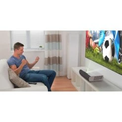L’Optoma CinemaX D2 Smart est un vidéoprojecteur 4K à ultra-focale qui est capable de projeter une image d’une diagonale de 2,50 m à 54 cm de l’écran. Grâce à sa source lumineuse, il peut aussi projeter une image de résolution 4K HDR (3840 x 2160 pixels). Cette image est parfaitement contrastée. La luminosité atteint 3000 lumens et le taux de contraste est de 1 800 000 :1. Une fois connecté, ce vidéoprojecteur 4K Ultra HD à ultra-courte focale vous est livré avec un dongle Android TV. Sa télécommande vous permet aussi d’accéder à différentes applications et services de streaming. Ce projecteur a été fabriqué pour se substituer au téléviseur. Vous pouvez le poser sur un meuble TV-vidéo ou encore à côté des appareils audio-vidéo. Ce vidéoprojecteur 4K se transforme alors en téléviseur connecté. Son dongle facilite la navigation sur l’interface. Ainsi, vous pouvez choisir les services de streaming que vous préférez. Optoma CinemaX D2 Smart : une focale ultra-courte L’Optoma CinemaX D2 Smart est un vidéoprojecteur 4K Ultra HD à ultra-courte focale qui peut se poser au pied d’un mur de projection. Ainsi, il n’est pas perturbé par les ombres à l’écran. Il est donc très pratique pour les séances de jeux vidéo demandant de la réactivité et de la concentration. En outre, sa luminosité de 3000 lumens lui permet d’offrir une très belle visibilité même en plein jour. Une lampe laser Ce vidéoprojecteur 4K Ultra HD à ultra-courte focale est aussi équipé d’une lampe laser puissante. En mode normal, sa longévité est environ de 30.000 heures. Quant à la technologie laser, elle permet de garder une bonne luminosité. Les couleurs sont nettement plus réalistes. Il n’est pas nécessaire de les calibrer. La lampe laser permet d’arrêter et de redémarrer instantanément le projecteur. Vous pouvez donc l’utiliser comme vous utilisez un téléviseur. Optoma CinemaX D2 Smart : 4K Ultra HD L’Optoma CinemaX D2 Smart est aussi un projecteur qui est pourvu d’une matrice DLP avec la technologie XPR qui permet d’afficher des images de 3840 x 2160 pixels. Vous profitez ainsi d’une image parfaitement détaillée avec des sources UHD 4K dont les disques Blu-ray 4K UDH et les plateformes de streaming (Disney+, Netflix, Prime Video…). HLG et HDR Ce vidéoprojecteur 4K Ultra HD à ultra-courte focale est compatible HDR étant donné sa luminosité puissante. Ce vidéoprojecteur 4K propose un important niveau de contraste. Les images HDR sont aussi très bien nuancées avec différents détails. Vous trouverez ces derniers tant au niveau des zones lumineuses que des zones sombres. Optoma CinemaX D2 Smart : USB et HDMI 2.0 La connectique de ce vidéoprojecteur 4K comprend trois entrées HDMI 2.0 dont une eARC. A cela s’ajoute un port USB alimenté qui sert justement à alimenter un Chromecast Vidéo. On y retrouve aussi une sortie audio mini-jack stéréo et une sortie audio optique. Ainsi, on peut relier un caisson de basses à cet appareil pour donner plus d’impact au son des films. Ce projecteur peut aussi le Dolby Atmos en charge.