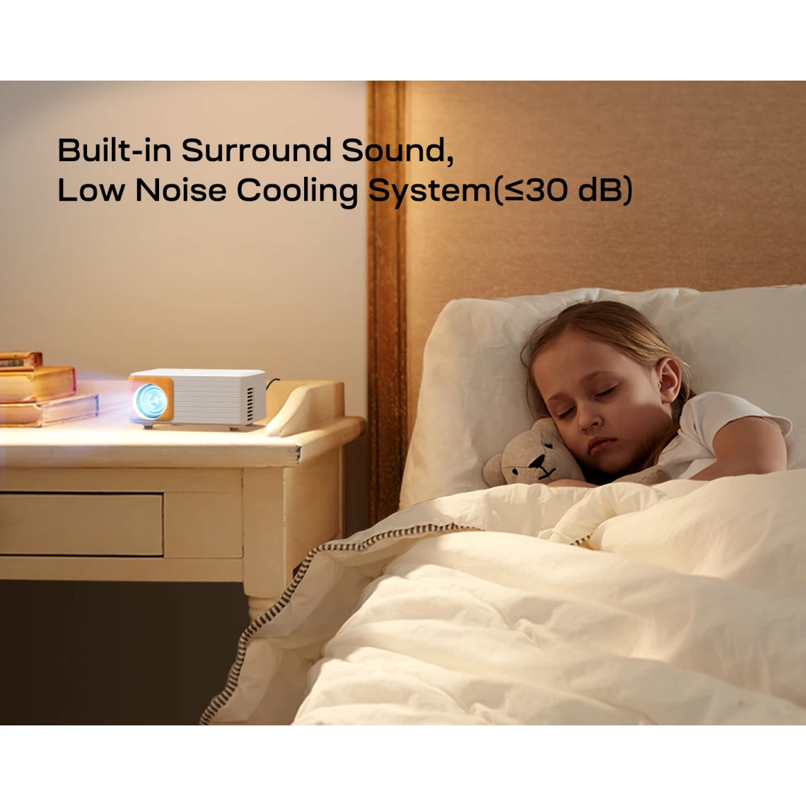 Il suffit de tourner la molette de mise au point et la molette de correction trapézoïdale de ±15°, vous pouvez obtenir une image rectangulaire claire et lumineuse, même les enfants peuvent l’utiliser sans difficulté. Une opération simple peut vous apporter un temps de visionnement infiniment beau.
