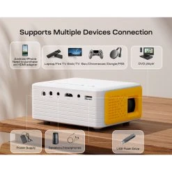 Points forts Sans Marque Yoton Mini Projecteur 720P Y3, Vidéoprojecteur Portable pour Home Cinéma 7500 Lumens, Compatible avec HDMI/USB/AV/Ordinateur