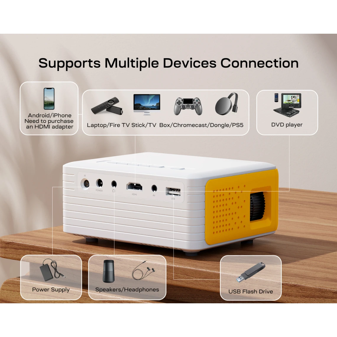►Comment connecter le mini vidéoprojecteur de téléphone à d’autres appareils ?