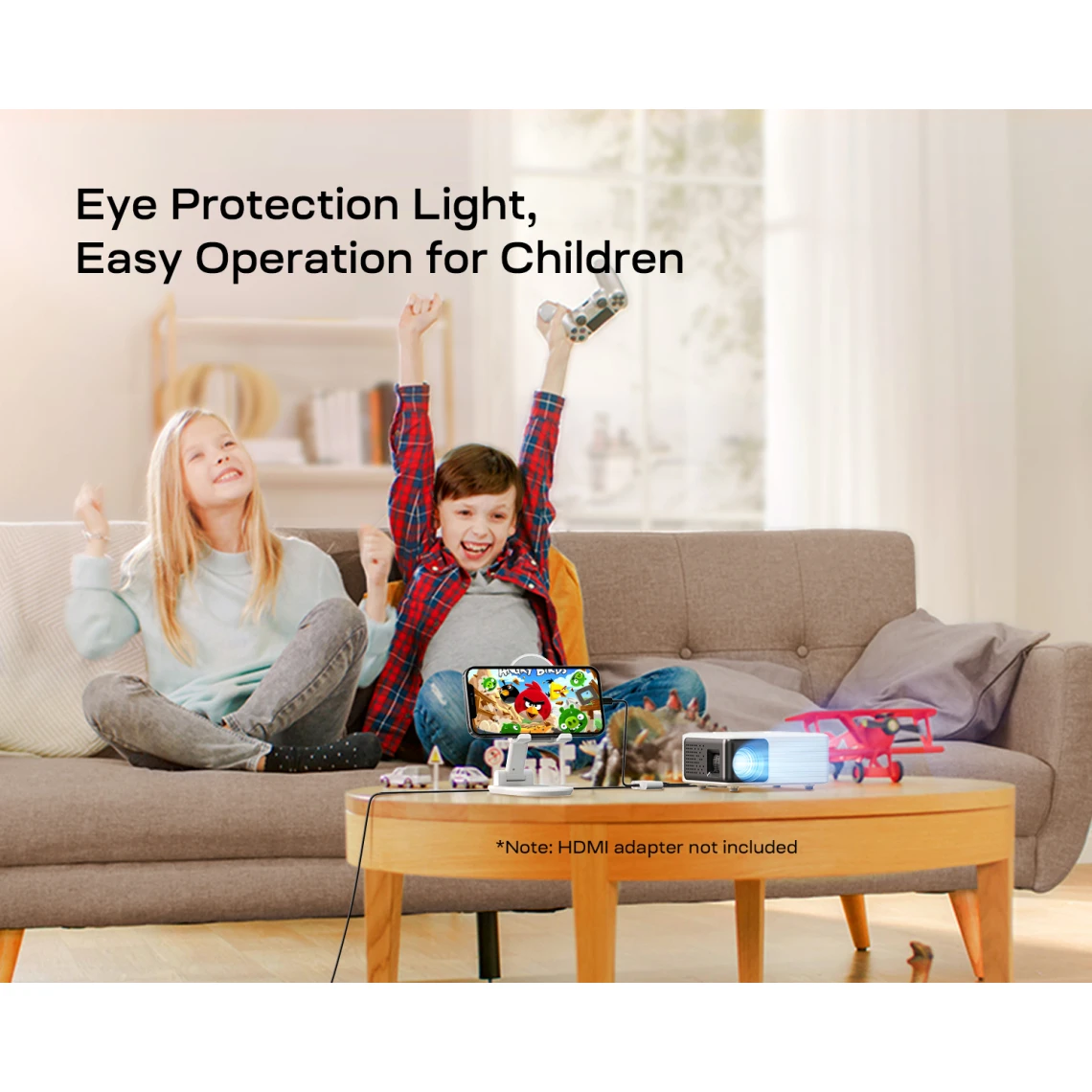 Utilisant le principe de l’imagerie par réflexion diffuse, la lumière bleue/blanche du projecteur est réfléchie par la surface au lieu d’être absorbée directement dans les yeux (comme lorsque vous regardez sur un ordinateur ou un téléphone portable), réduisant ainsi la charge sur les yeux et faciliter la protection des yeux de votre enfant et de vous-même.