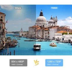 projecteur natif 720P dispose d’une qualité améliorée du ventilateur et le tout nouveau système de refroidissement double ventilateur, ce qui réduit le bruit du ventilateur de 80% et responsabilise une superbe expérience pour regarder et écouter, le rendant parfait pour le cinéma maison. Vous n’avez pas besoin de vous soucier du son bruyant plus